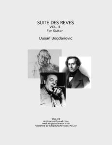 Described as a composer of masterful craft with a genuine clarity and purity of vision (Guitar Review), music author Dušan Bogdanović has developed a personal synthesis of contemporary classical, jazz and world music. His work numbers over two hundred published compositions, including a variety of commissions for solo guitar, chamber ensembles, orchestra and multimedia. He also has numerous CD recordings. Early in his career, Dusan received the only First Prize at the Geneva Competition and gave a highly acclaimed debut recital at Carnegie Recital Hall in 1977.
